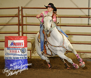 Flo is now Paige's main ride. At the 2012 NBHA State Finals, they were 10th in the 1st Round and 2nd in Round 2, finishing 5th in the Open 1D Average. Qualifying for their first NRA Finals they finished 3rd in Round 1. Flo is the dam of Flo Me The Money (Lizzie) by Cash In Your Bux.